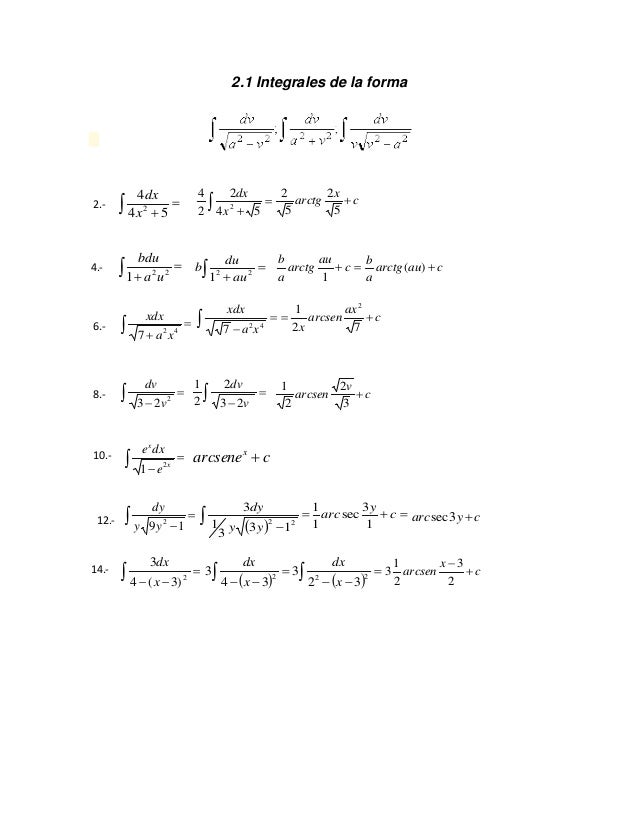 A continuación se indican algunas técnicas de Integración que nos permitirán encontrar las integrales de una clase muy amplia de funciones.